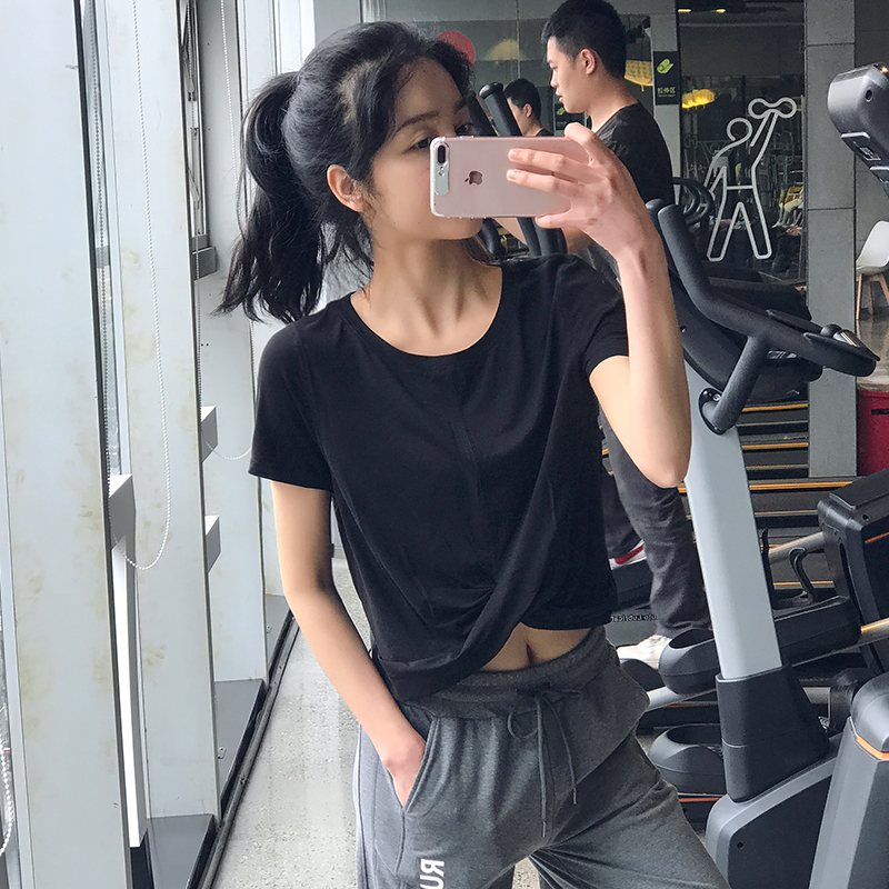 Sexy Short Truffle Movement Short Sleeve Speed Dry T-shirt Elastic Conspicuthin Running Yoga Service Loose Large Size Fitness Clothing
