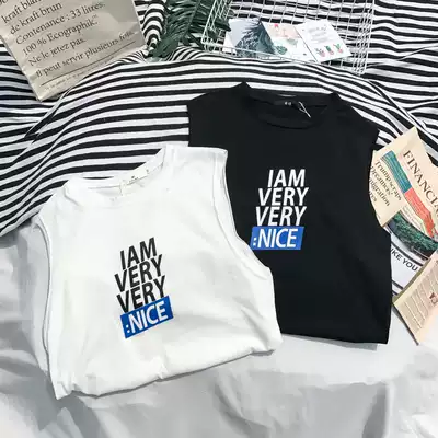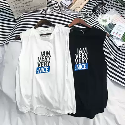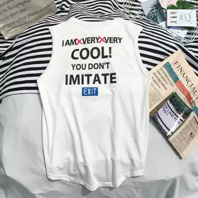2021 summer new Korean hip hop sleeveless sports vest loose men's trend Hong Kong style letter waistband shoulder T-shirt