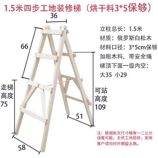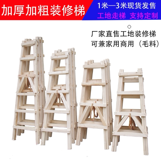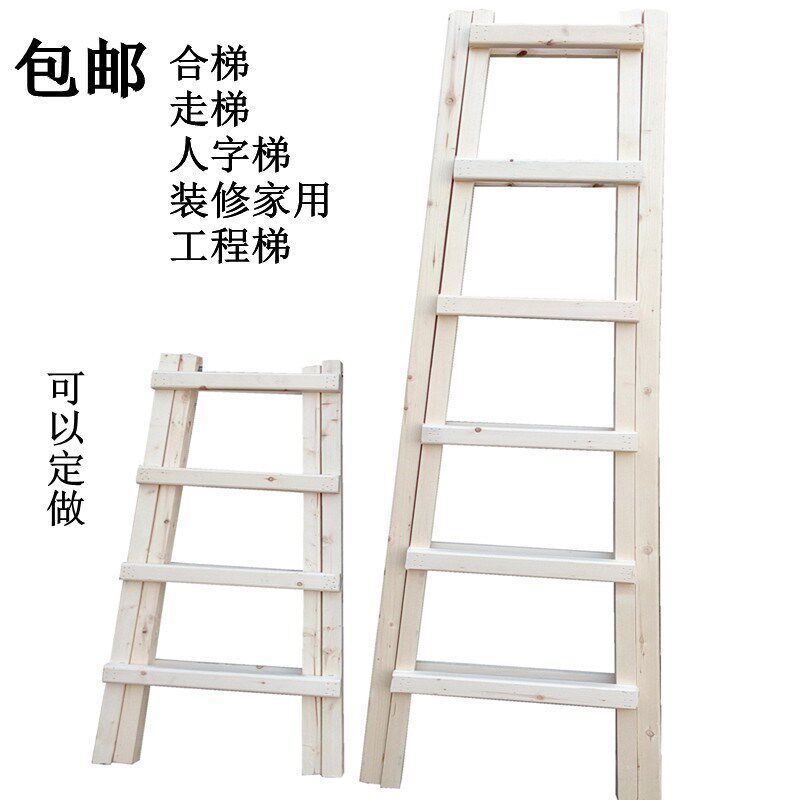 Escalator thickening four layers of wooden engineering wooden household ladder solid wooden pine double side