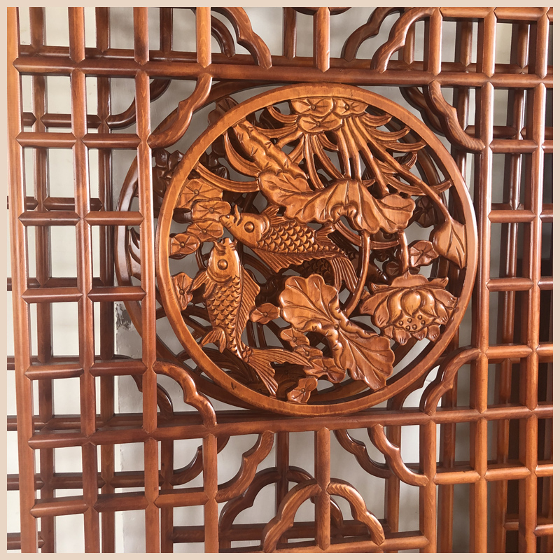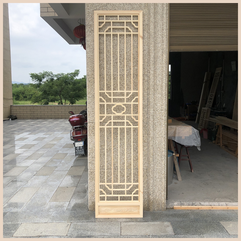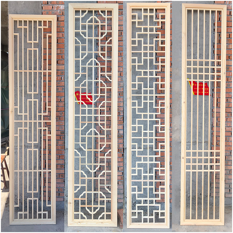 Custom solid wood hollowed-out flower lattice Chinese style decoration TV background wall wood carving decoration imitation antique screen partition grille