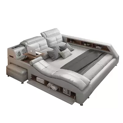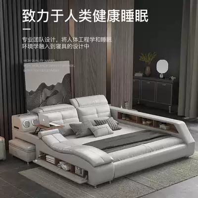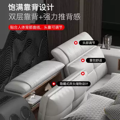 Light luxury zhen leather bed double bed 1 8 meters nuptial bed soft modern minimalist master nuptial bed Nordic atmospheric pi yi chuang