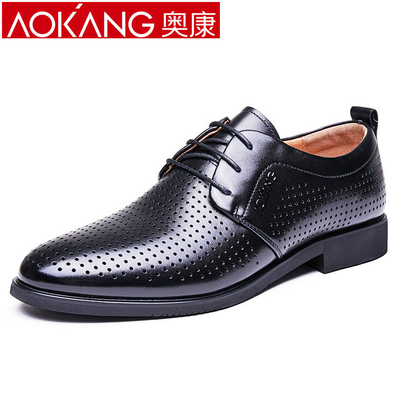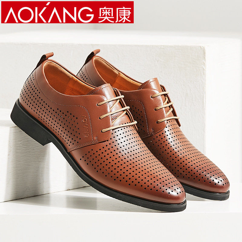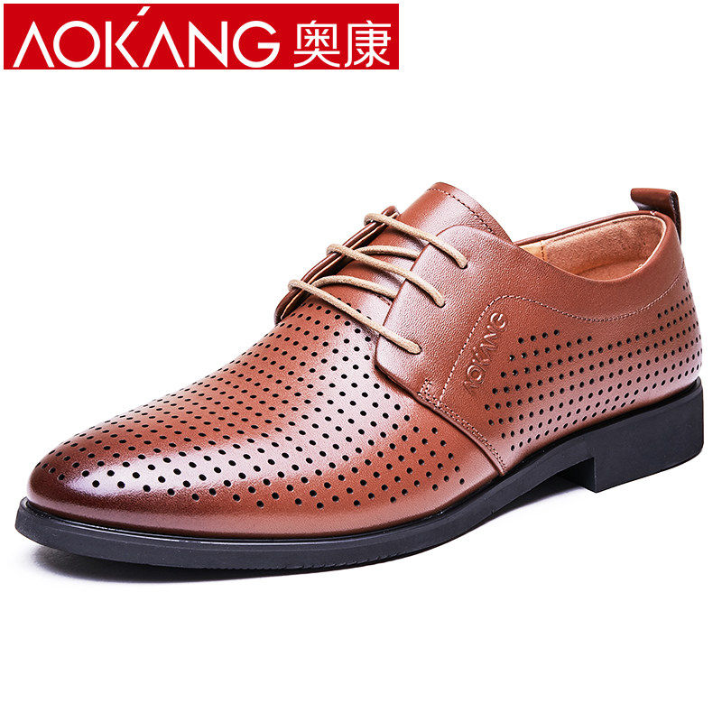 Aokang Men's Shoes Summer Hollow Out Sandals Men's Formal Leather Shoes Leather Sandals Men's Business Casual Breathable Shoes