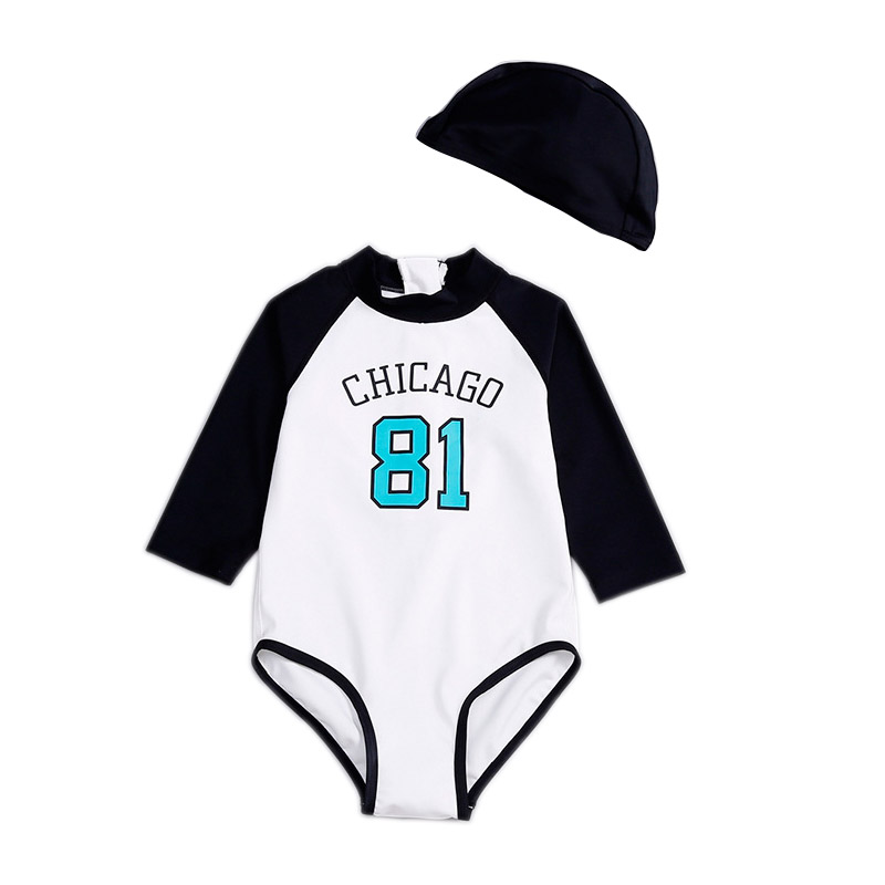 New children swimsuit, long sleeves for children, girls, toddlers, one-piece hot spring, sun protection, UV protection, swimming suit, swimming cap