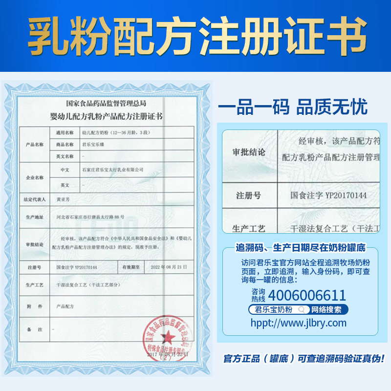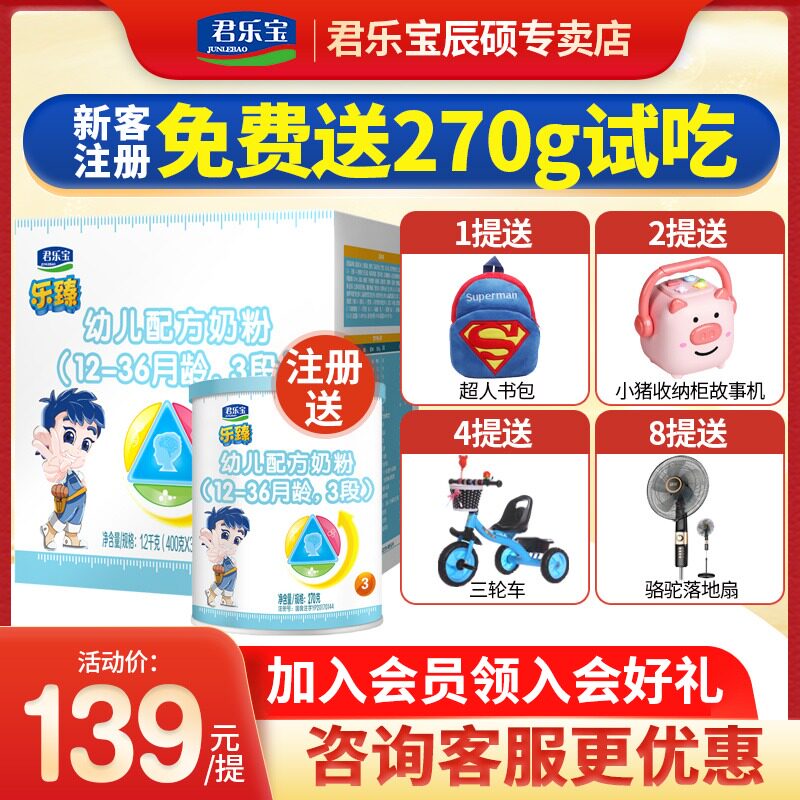 Junlebao Milk powder 3-stage Le Zhen triple package lactoferrin for children 1200g Flagship store official website
