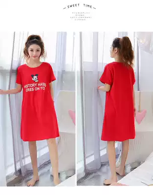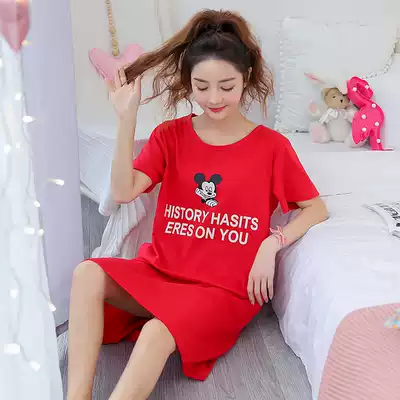 This year's big size pajamas ladies summer cotton short sleeve loose Korean red slim nightgown fat mm200 kg