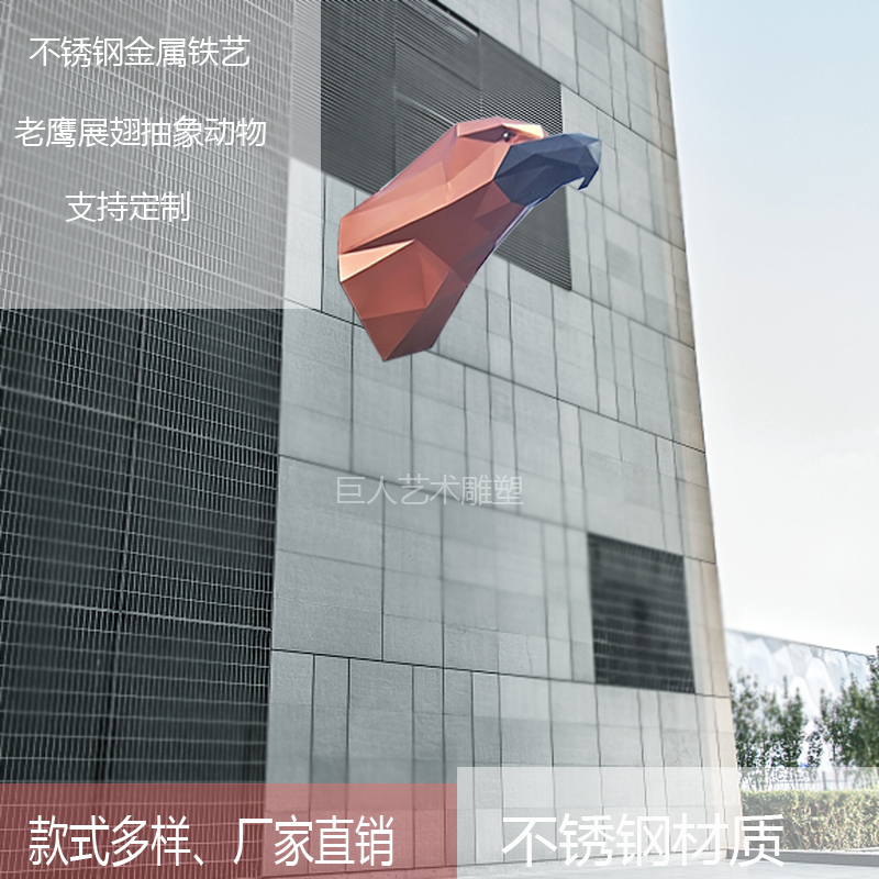 Stainless steel creative abstract simulation Eagle geometric section animal sculpture mall art large wall hanging decorations