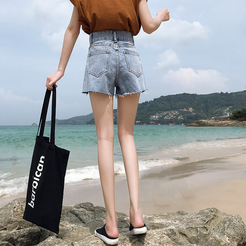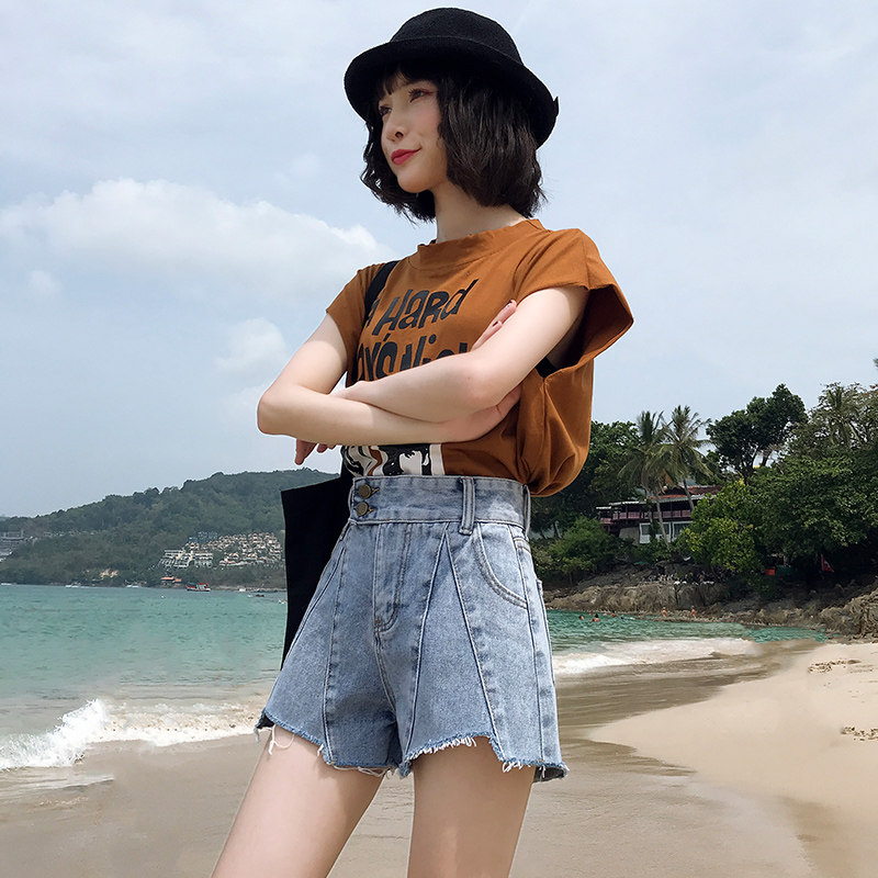 Denim shorts women's high waist thin 2021 new summer thin section wear loose a word wide leg ins hot pants tide