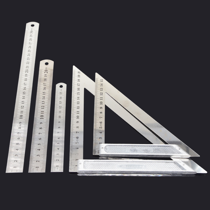 Stainless steel triangular ruler high-precision thickened right angle 90 degrees woodworking scale tool ruler large horn size 45 degrees