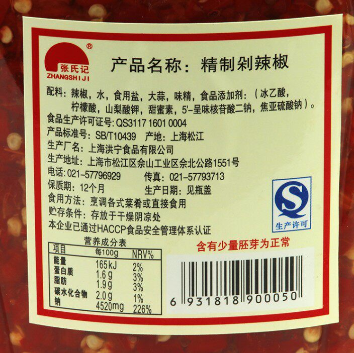 Zhang's Notes Chili Sauce Refined Chopped Chili 2 3kg Red Chopped Pepper Fish Head Chopped Peppers Catering