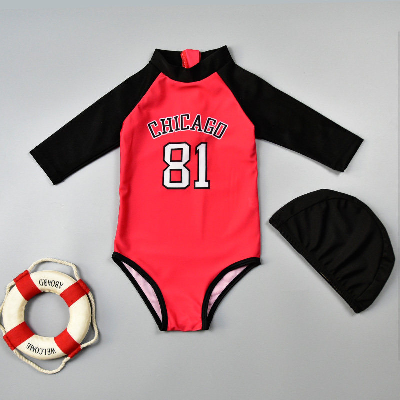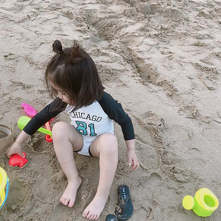 Children's swimsuit girl one-piece long-sleeved sunscreen girl cute swimsuit Korean princess baby hot spring swimsuit