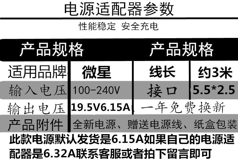 MSI Microstar GE60 GE70 Computer Power Supply Laptop Computer Charger 19V 6 32A 6 15A Line