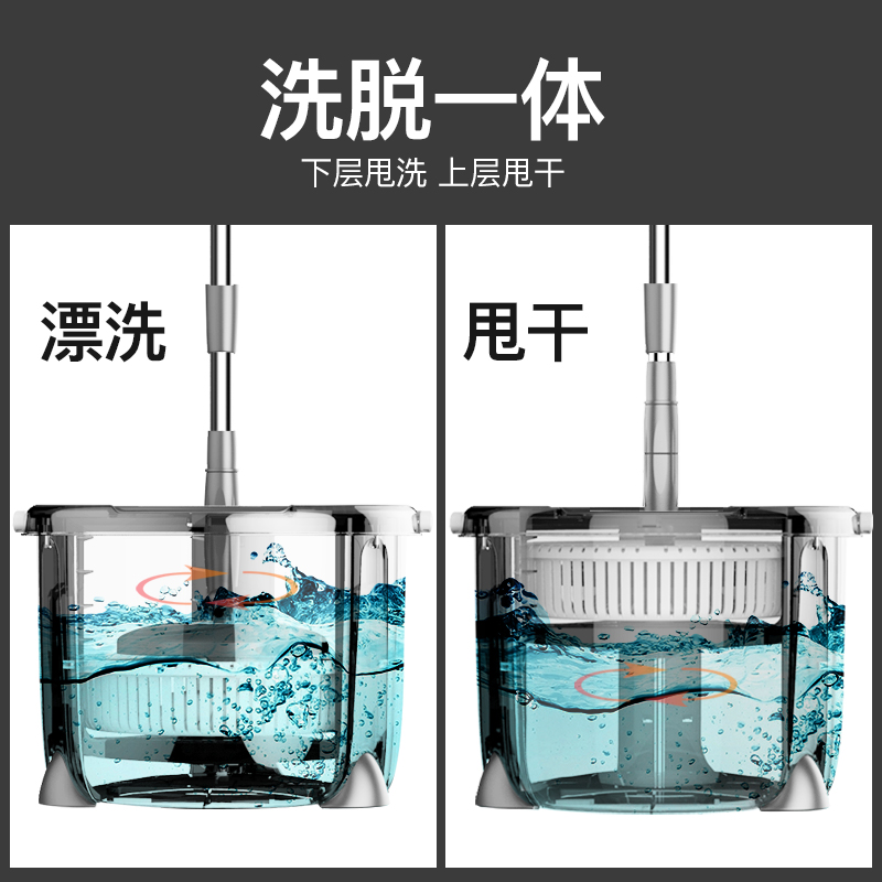 Rotate the tow lever universal single barrel automatic shake dry no hand washing a drag lazy man mop cloth mop cloth household mop bucket net