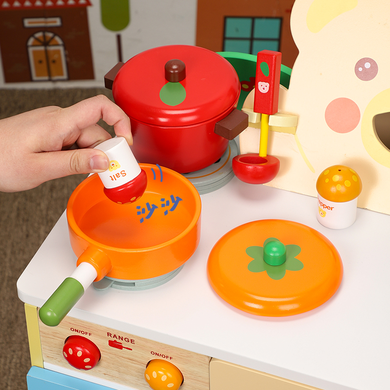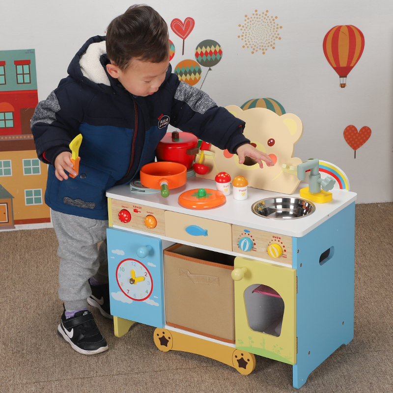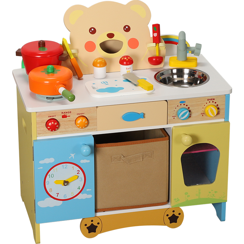 Emulation Cute Little Bear Dress Home Wine Woody Kitchen Toy Girl cooking Cooking Game Birthday Gift 3-6
