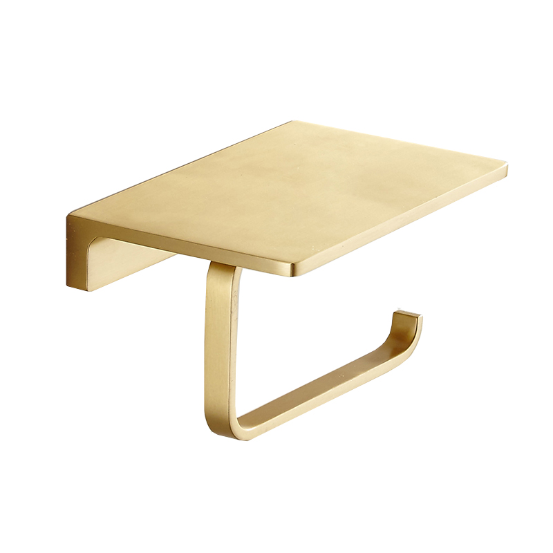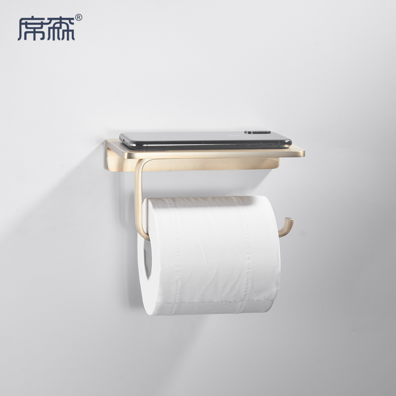 Sisen solid brass brushed gold toilet tissue holder bathroom toilet toilet multi-functional mobile phone roll paper holder