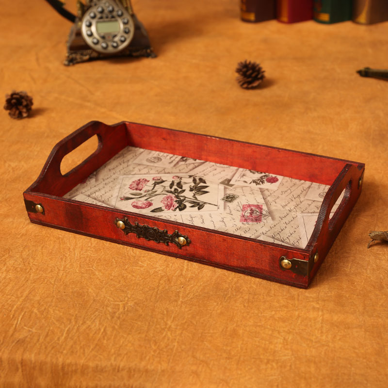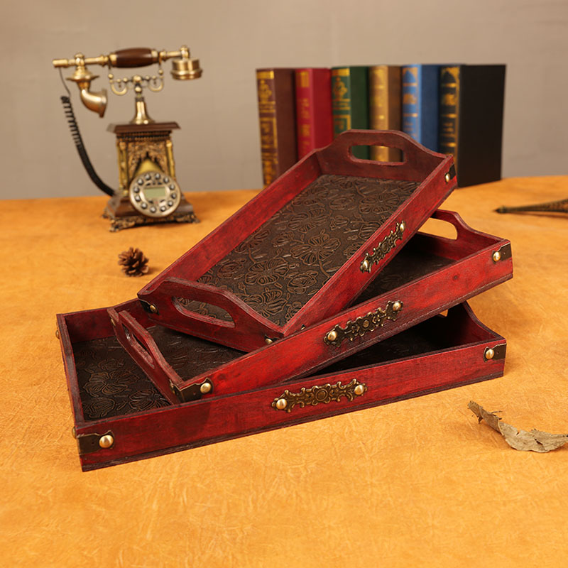 New Chinese ins wind retro wood Rectangular Drain Cup's depository Home Living room containing tea tray Fruit tray