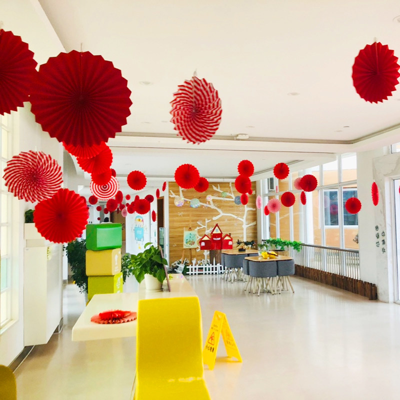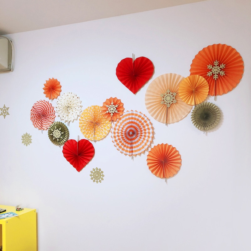 Set of six paper fan flowers (color series) A set of six paper fan flowers (red and white series) set of six paper fan flowers (red series) set of six paper fan flowers (pink series) set of six paper fan flowers (orange series) set of six paper fans Fan flower (green