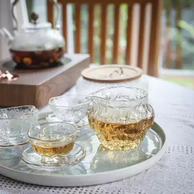 Japanese-style heat-resistant glass Road Cup teacup hammer eye wavy walnut pattern gold-rimmed tea set