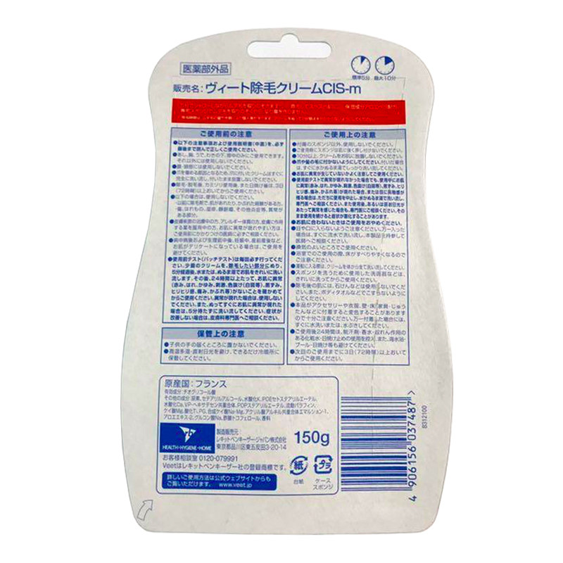 Japanese version of Veet Veet men's hair removal cream for sensitive muscles, students use the whole body to remove chest, abdomen, leg hair and underarms 150g