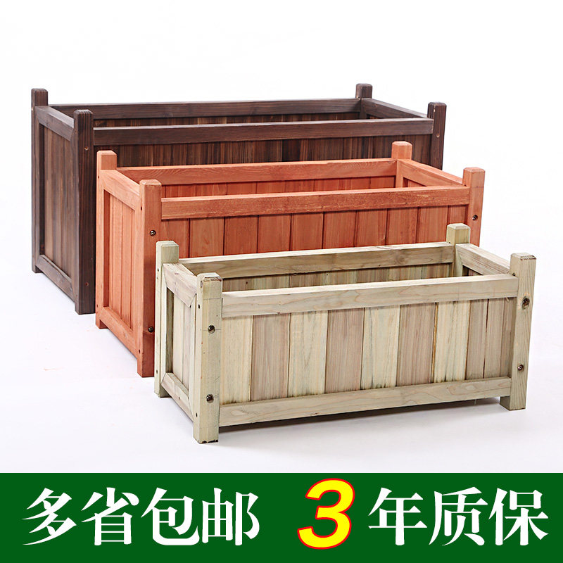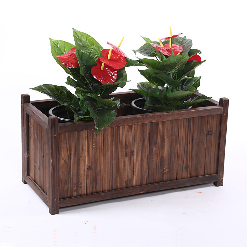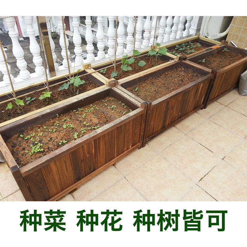 Outdoor anti-corrosion wood planting box carbonized solid wood flower pot Balcony vegetable pot Rectangular large outdoor flower box flower tank