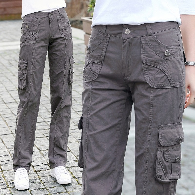 Work Pants Women Multiple Pockets Spring New Long Pants Sports Lady Pure Cotton Straight Drum Spring Autumn Outdoor Casual Pants