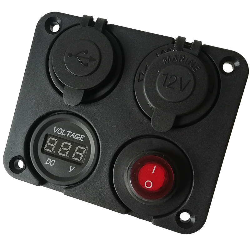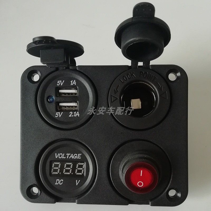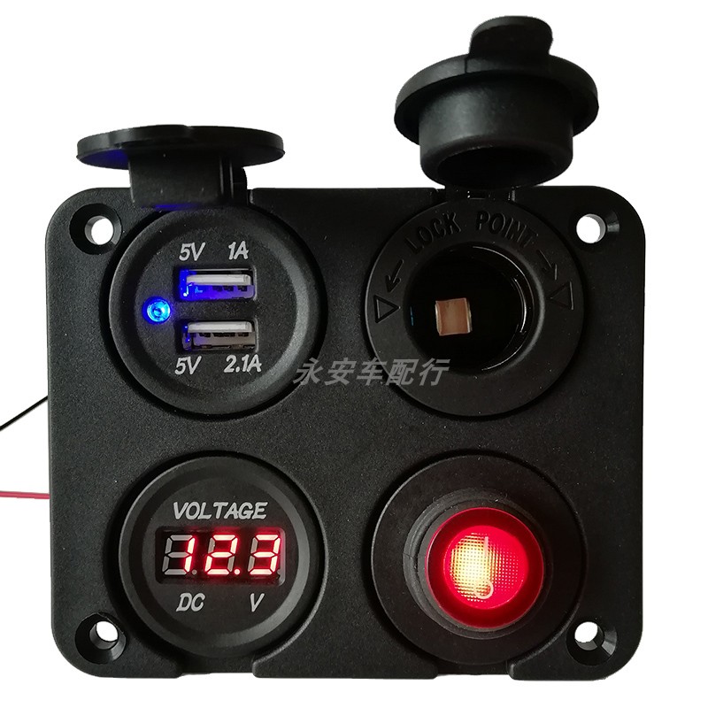 Four-hole panel car cigarette lighter socket USB charging on-board voltmeter switch combination motorhome modification universal