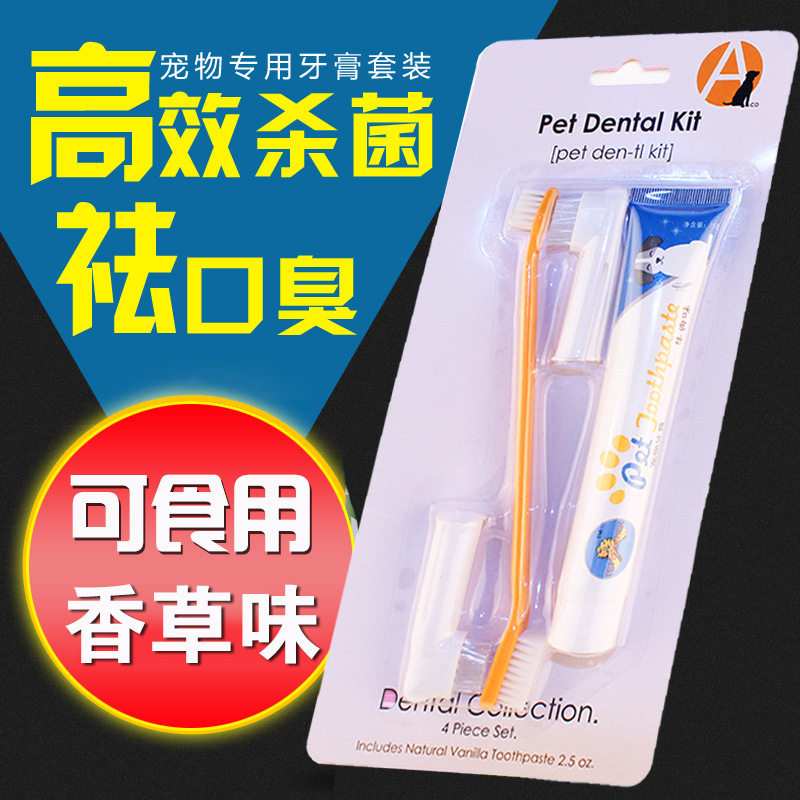 Pet double-headed cat toothbrush set dental oral cleaning supplies in addition to bad breath brushing teeth cleaning edible toothpaste