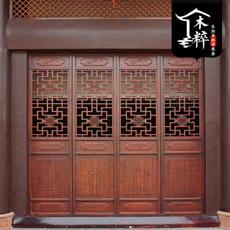 Dongyang wood carving Chinese antique lattice classical carved door pine log screen door and window solid wood background wall custom - Taobao