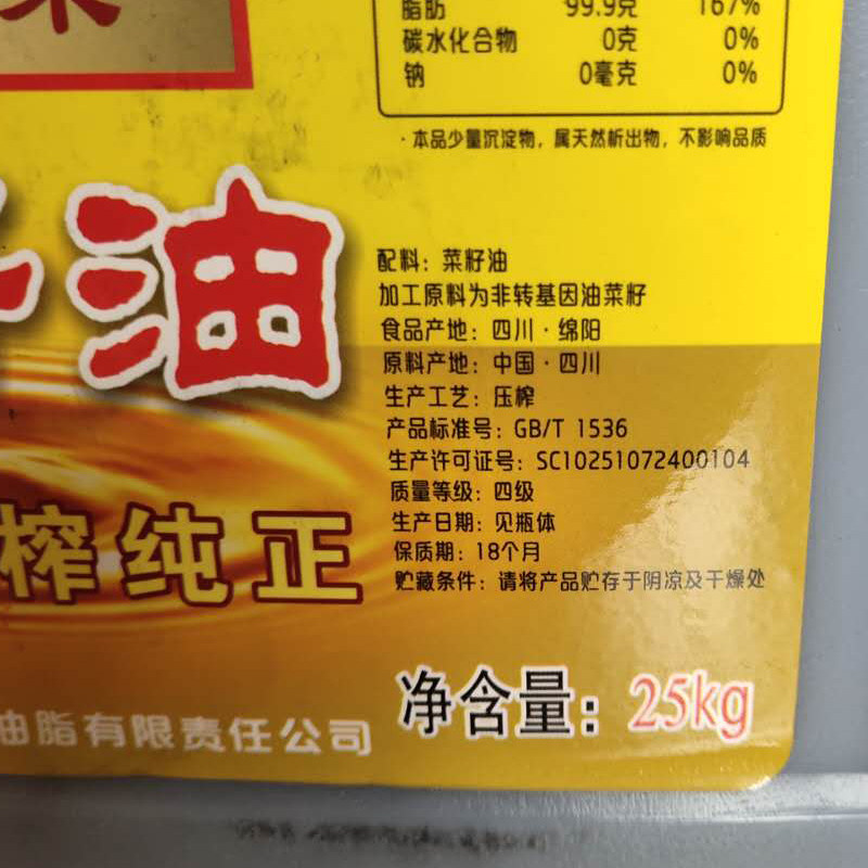 Lin Xiangyuan Sichuan Little Squeezed Pure Vegetable Oil 25kg Old Mills 50 catty Bulk Cooking Oil Cooked Vegetable Oil Farmers