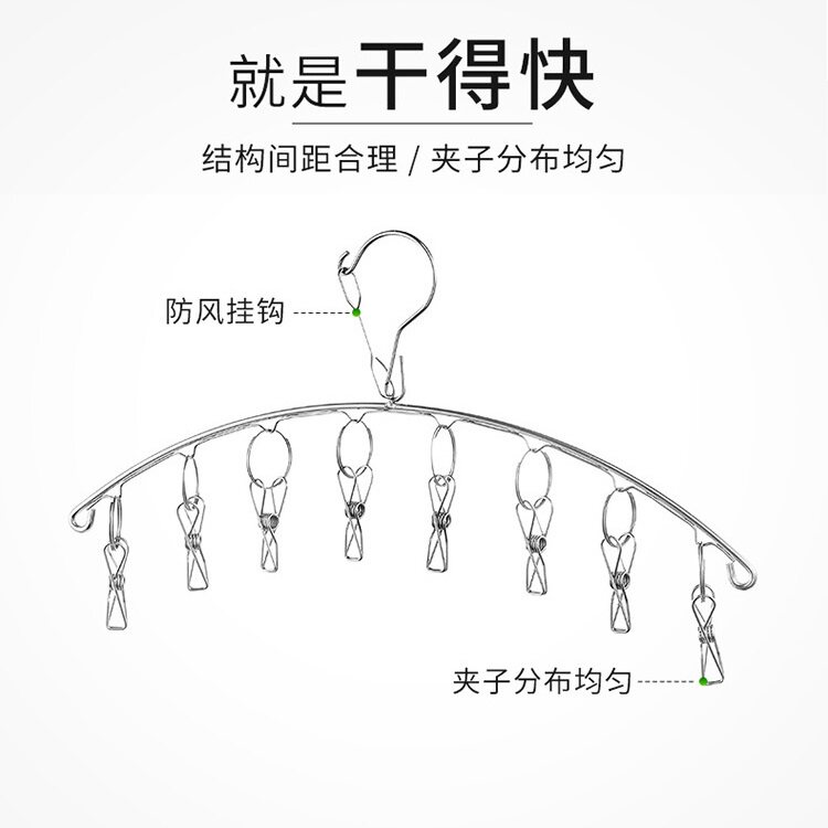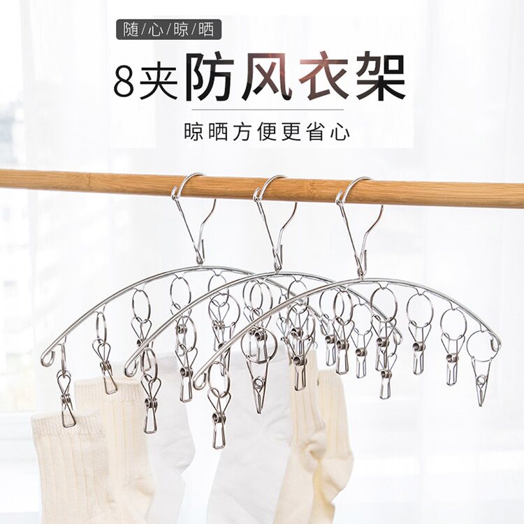 Stainless Steel Socks Clip Hanger Hook Multifunction Clip Socks Rack Clothesline Hanging Windproof home Contained Sunning Socks