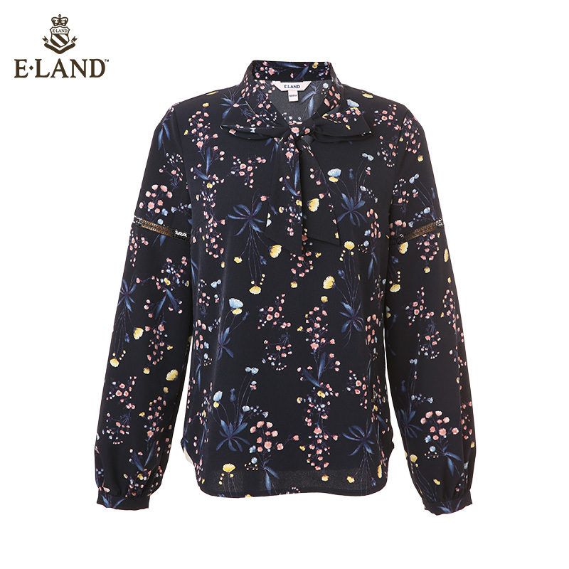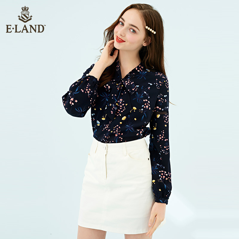 ELAND Clothes Romance Spring Summer Style Fashion Design Sense Temperament don't make a little crowdlace Blossom Long Sleeve Shirt Woman