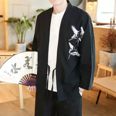 Hanfu men's suit loose large size ancient costume Zen clothing Chinese style crane embroidery jacket Buddha system Men's Tang suit robe