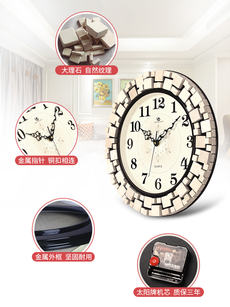 Aesthetic fashion marble creative simplicity Nordic living room wall clock home mute pastoral wall art quartz watch
