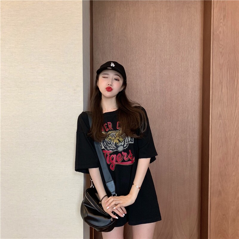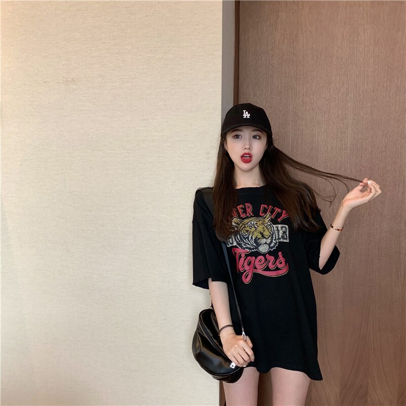Pure desire simple cotton short-sleeved t-shirt female ins trend 2022 new summer loose top sexy net red same style Hyuna