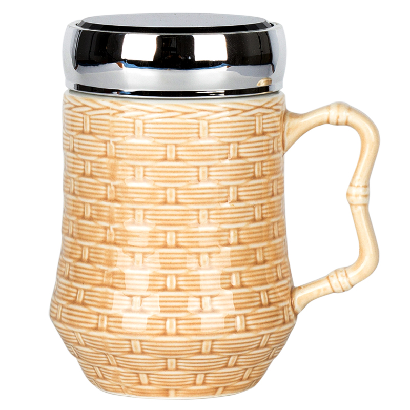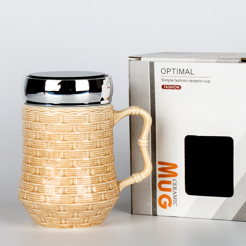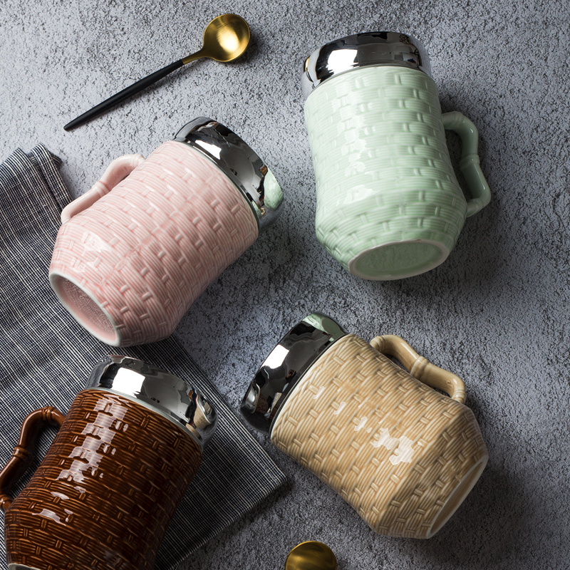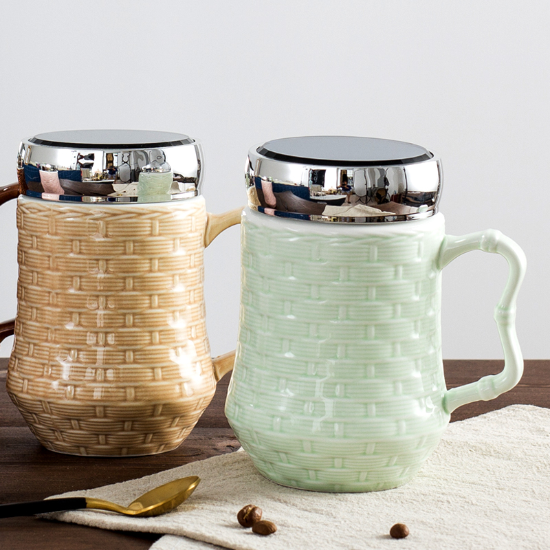Relief Bamboo Pattern Retro Ceramic Mark Cup Nordic Style Couple Water Cup Breakfast Coffee Cup Accompanying Cup With Lid