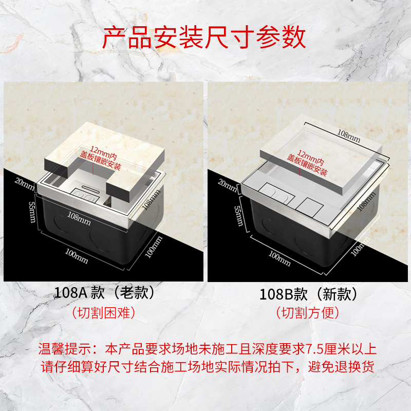 Fenia 108 marble stainless steel ground plug hidden inlaid five-hole network ground socket 304 customized