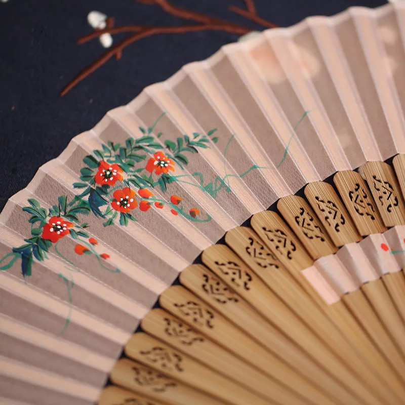 Chinese Wind Real Silk Hand-painted Fan Mini Portable Lady Day Style Folding Fan Craft Fan Gift Fan