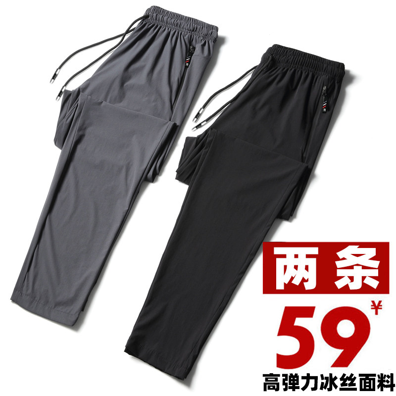 Summer outdoor speed dried pants men high elastic ice wire ultra-thin recreational sports pants beam and large tide