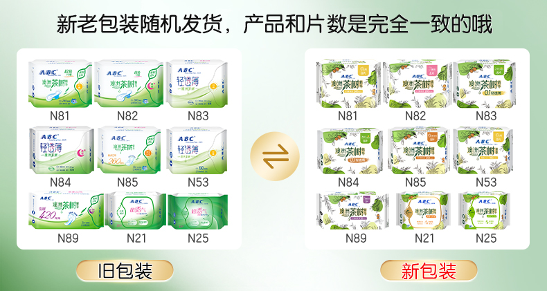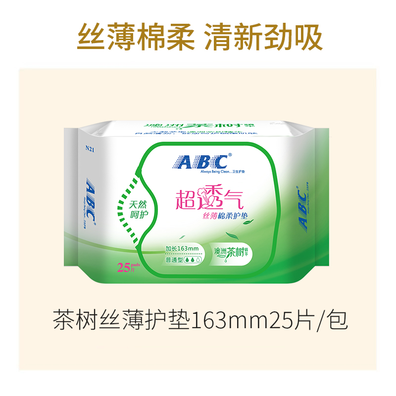 ABC women's brand pad 163mm silk thin cotton soft combination package Australian tea tree essence sanitary napkin whole box