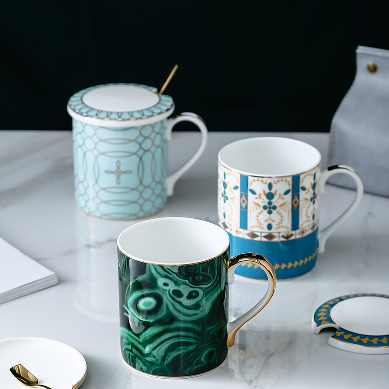 Creative mug with lid spoon Nordic ins ceramic couple water cup large capacity afternoon tea cup bone china coffee cup