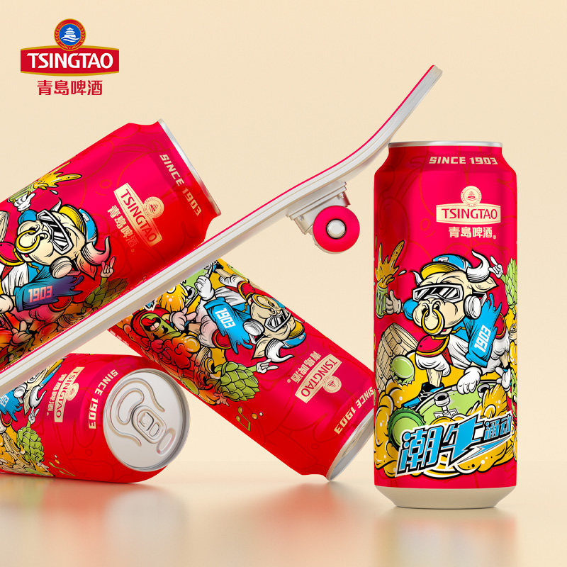 Tsingtao Beer Twelve Zodiac Series Ox Year Can Tide Ox Surge 500ml*12 Cans Produced in Qingdao
