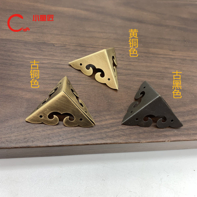 Imitation ancient pure copper wrap corner copper protective corner Chinese furniture copper accessories Zhangwood box on three sides corner flower Xiangyun hollowed-out corner code