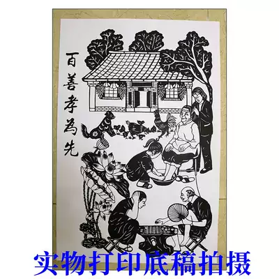 Baixiao is the first paper-cut pattern black and white printing manuscript HD handmade paper carving harmonious material pattern photocopy manuscript