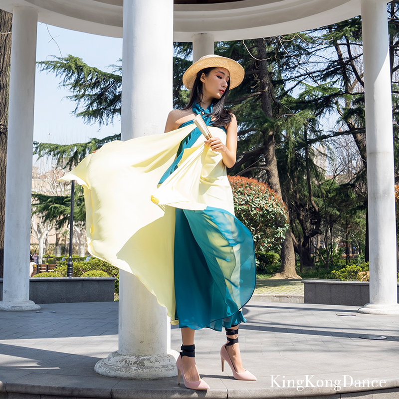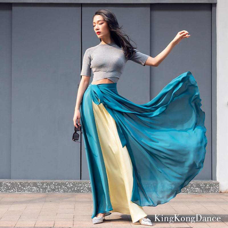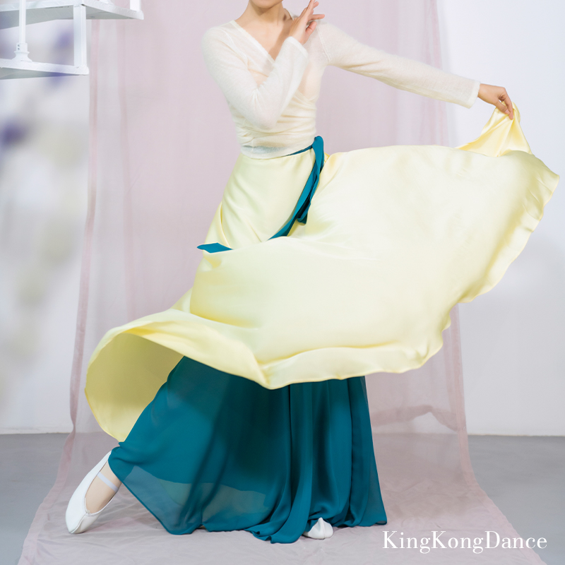 Poetic flower original Orioles Yellow willow green 100 hitch a practice skirt and a half-body long skirt North Korean dance king Poetry in the same style-Taobao