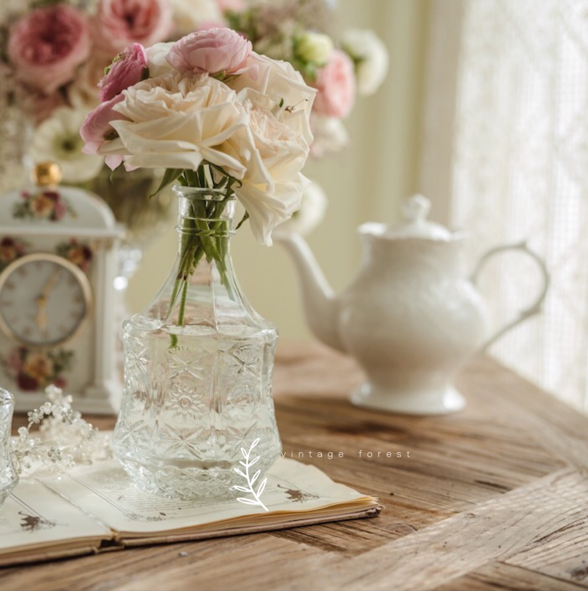 External Single Retro Relief Method Type Glass Vase Photography Props Engraving Hydropony Dry Flower Vase Home Living Room Decoration