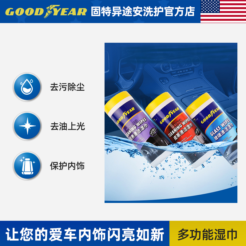 Goodyear car multi-function wet tissue Rear mirror Glass window instrument Leather interior decontamination cleaning kit