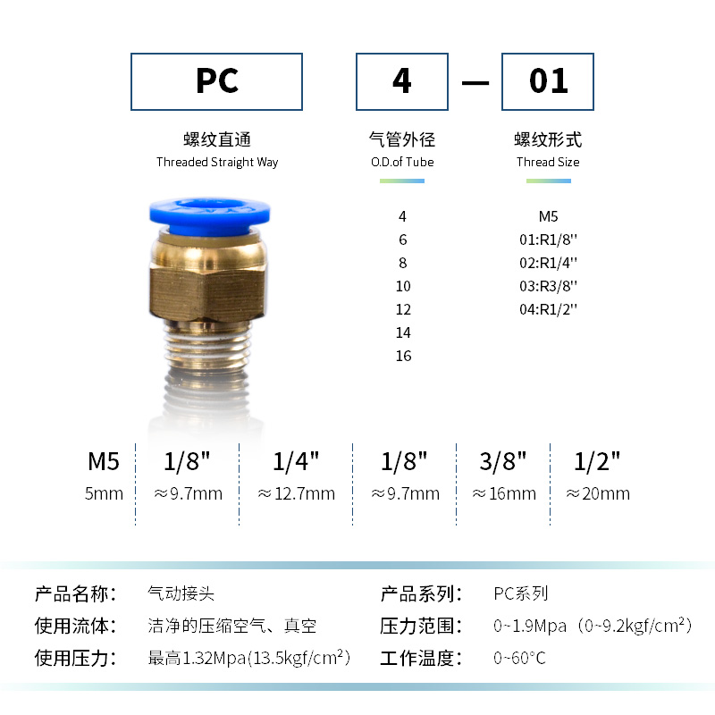 Pneumatic trachea PC8-02 Quick connector PC4-M5 Quick-insert PC6-01 thread straight through PC10-03PC12-04