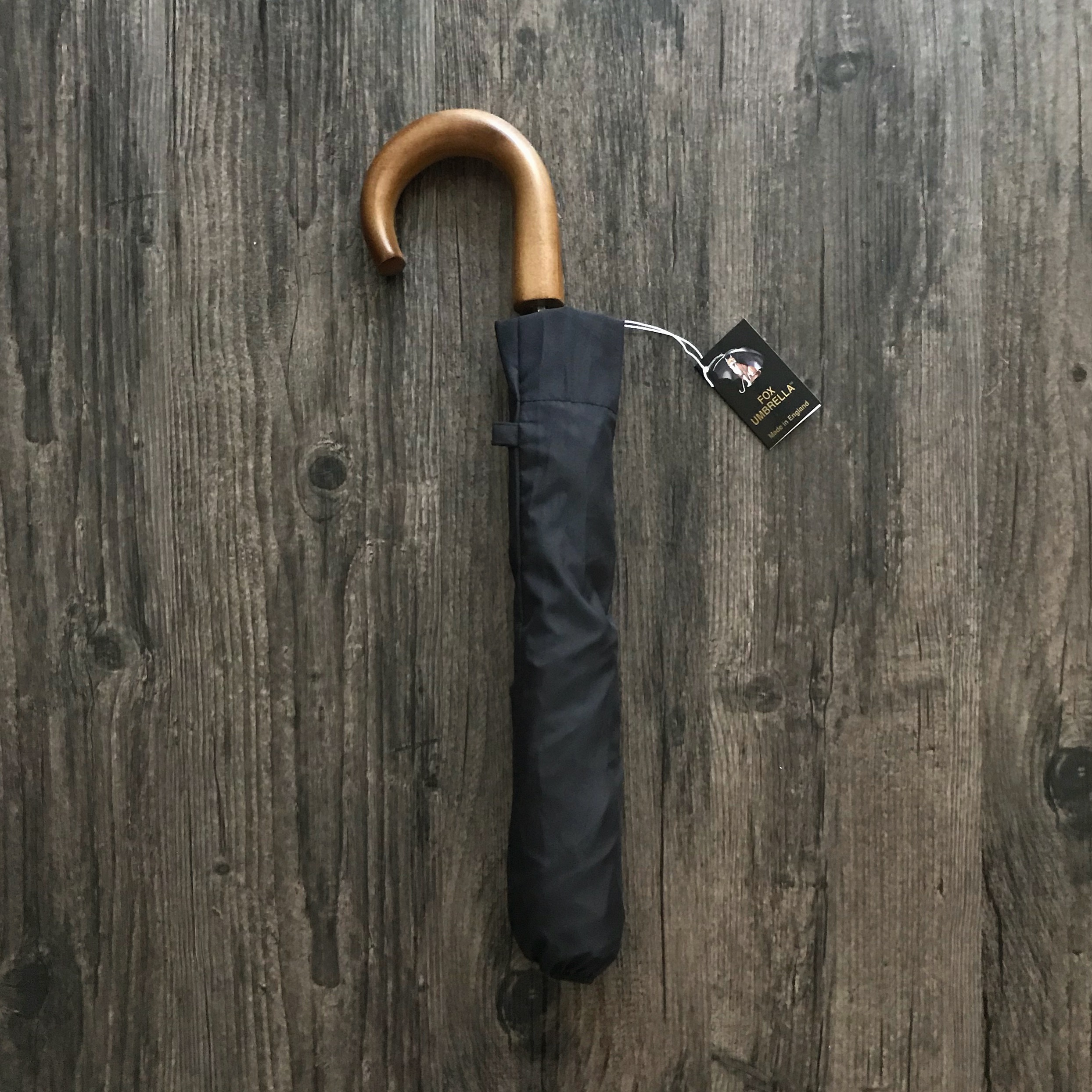 Spot Fox Umbrella British handmade black rain cloth with brown wooden umbrella handle folding umbrella