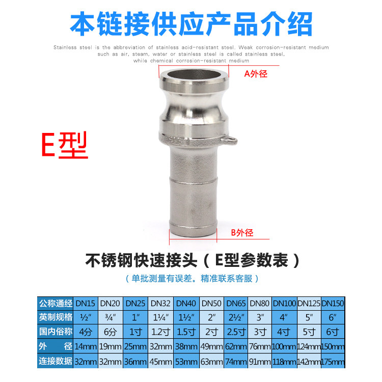 304 stainless steel quick joint E type male head pulling style buckle type welding tubing hose steel wire hoses high-pressure-Taobao