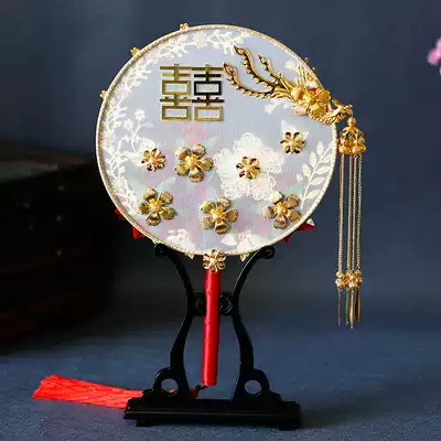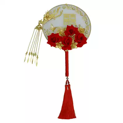 Cute bride Chinese Wedding Bride wedding Red simulation flower double-sided golden costume fan holding flower