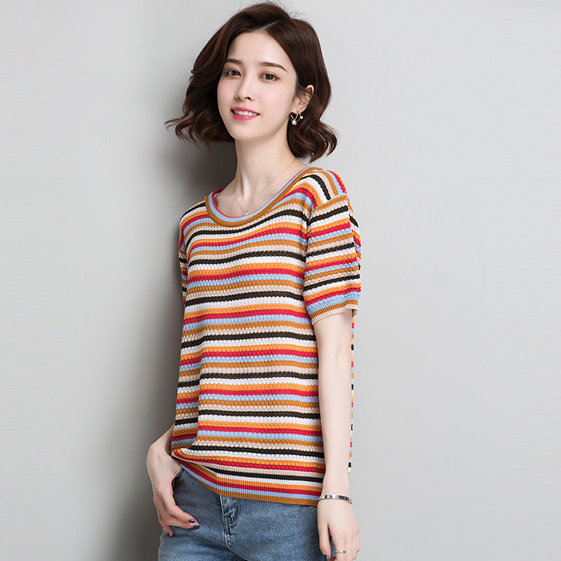 Short sleeve positive shoulder T-shirt woman 2022 new summer clothes knit bottom jersey ins Chauded with early spring loose blouse clothes